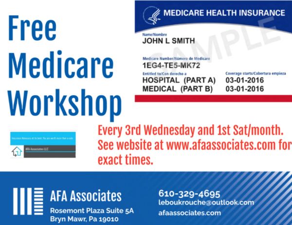 FREE Medicare workshops-1st one will start officially July 16th, 2025!🥳🥳🥳 Then Every third Wednesday from 6pm-7:30 PM and the first Saturday of every month from 10am to 11:30 AM. 😀Each workshop is limited to 6 people so please text/call 610-329-4695 to register if you have interest in the workshop.😀 It will be held at the office on Lancaster Avenue in Rosemont Plaza, Bryn Mawr PA.19010-suite 5A.